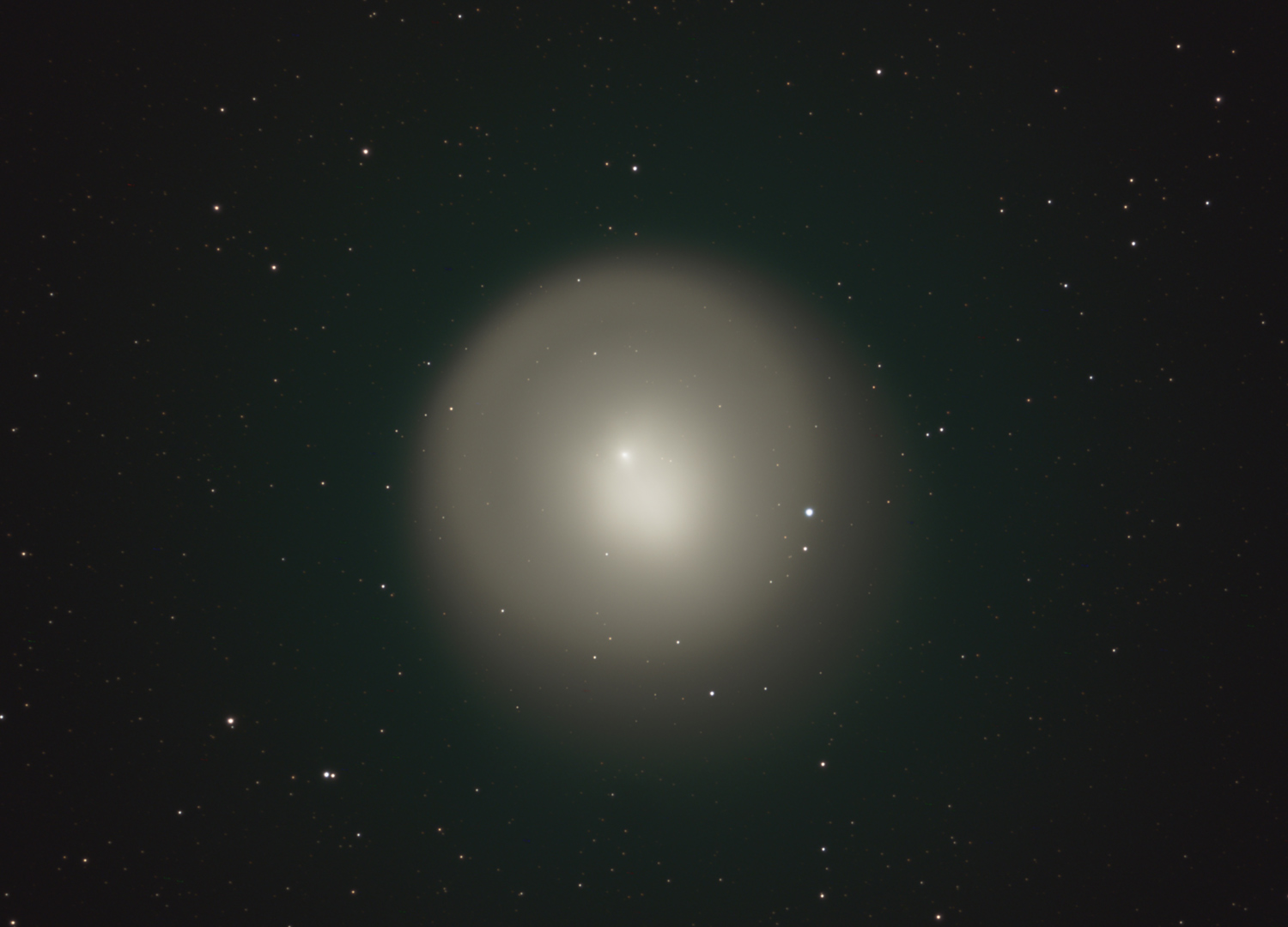 Nach wie vor erscheint Komet 17P/Holmes als dritthellster „Stern“ im Sternbild Perseus – sofern das Wetter mitspielt und die Wolken den Blick auf diese Himmelsregion freigeben. Bereits mit bloßem Auge fällt auf, dass er nicht punktförmig leuchtet wie ein Fixstern, sondern eine diffuse Gestalt hat. Ein einfaches Fernglas reicht aus, um ihn als fast kreisrundes Scheibchen zu sehen. Die Staubwolke, die der Kometenkern freigesetzt hat, erreicht mittlerweile den halben Durchmesser der Vollmondscheibe. Und nun bildet der Komet auch noch einen Gasschweif aus, obwohl er 2,5 Astronomische Einheiten (fast 400 Millionen Kilometer) von der Sonne entfernt ist. Dass sich trotz dieser riesigen Distanz zur Sonne ein Schweif ausbildet, ist sehr ungewöhnlich. Normalerweise entwickeln Kometen nur dann einen sichtbaren Schweif, wenn sie der Sonne so nahe kommen, dass sie sich innerhalb der Marsbahn befinden.