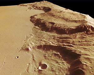 Die High Resolution Stereo Camera (HRSC) an Bord der europäischen Raumsonde Mars Express machte Aufnahmen von Mangala Fossae, einem System von Ausflusskanälen auf dem Mars, die Hinweise auf Lavaablagerungen und katastrophale Fluten beherbergen.