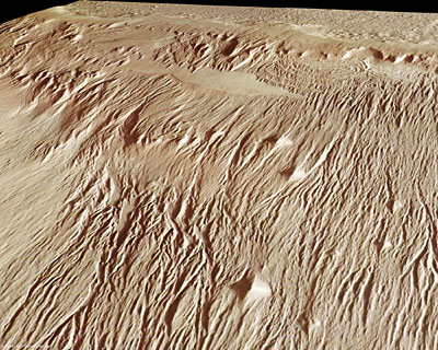 In dem abgelichteten Gebiet östlich eines Bergrückens, der nach den Rachegöttinnen der griechischen Mythologie als Eumenides Dorsum („Rücken der Furien“) benannt wurde, haben vom Wind mitgeführte Partikel nach Art eines Sandstrahlgebläses schmale und lange Furchen in den vulkanischen Untergrund gegraben.