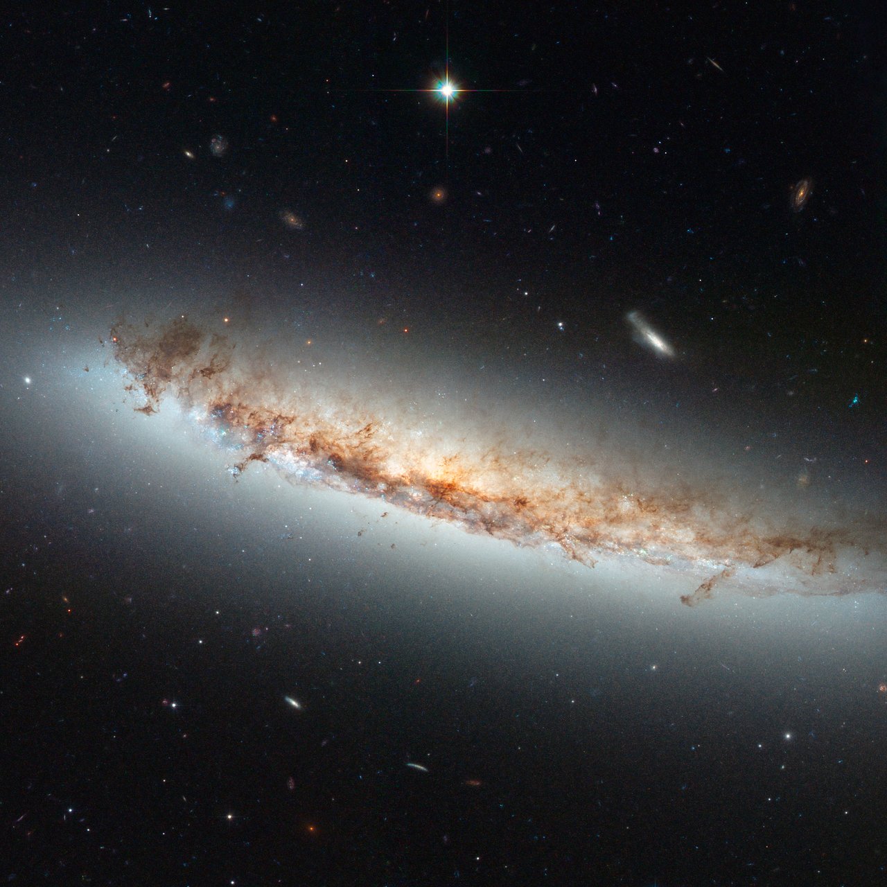 Auch bei der Galaxie NGC 4402 (im Bild unten) sind Anzeichen dieses Materialverlustes zu erkennen: hier hat die Galaxienscheibe eine leicht gebogene Form angenommen.